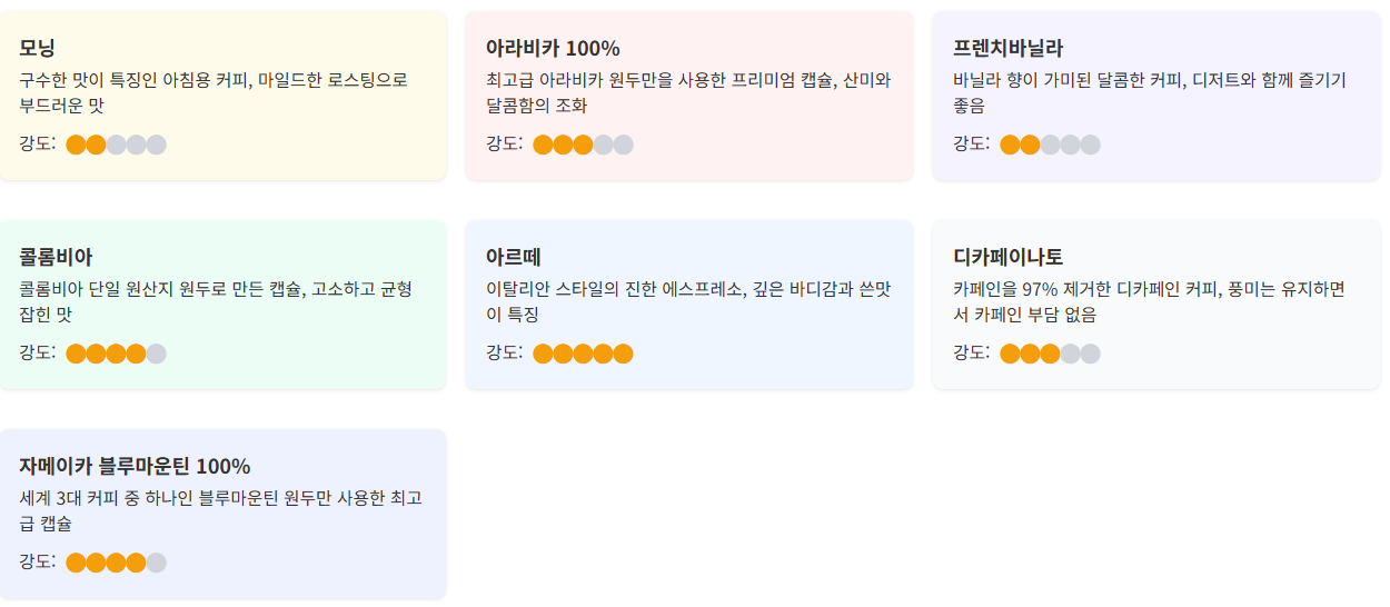 - 프렌치바닐라: 달콤한 바닐라 향이 가미된 캡슐