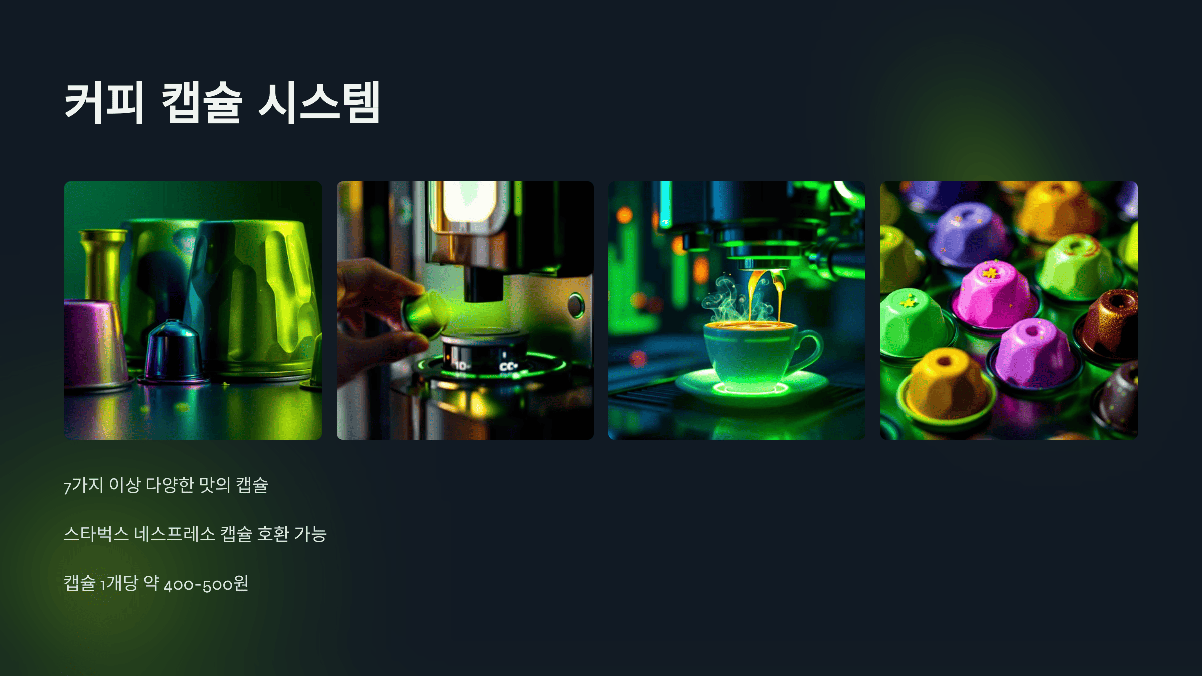 - 다양한 커피 맛: 7가지 이상의 다양한 캡슐 커피 맛을 제공합니다.