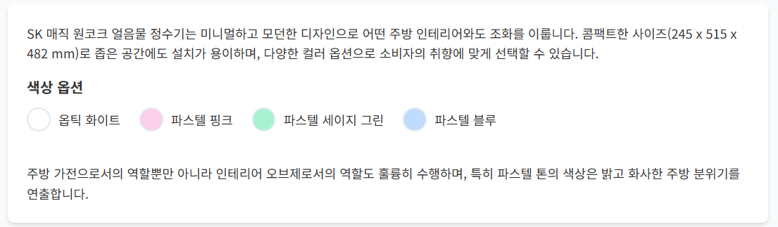 - 공간 효율성: "기존 얼음정수기보다 크기가 작아 주방이 훨씬 넓어진 느낌이에요. 디자인도 예뻐서 주방 분위기가 좋아졌어요."